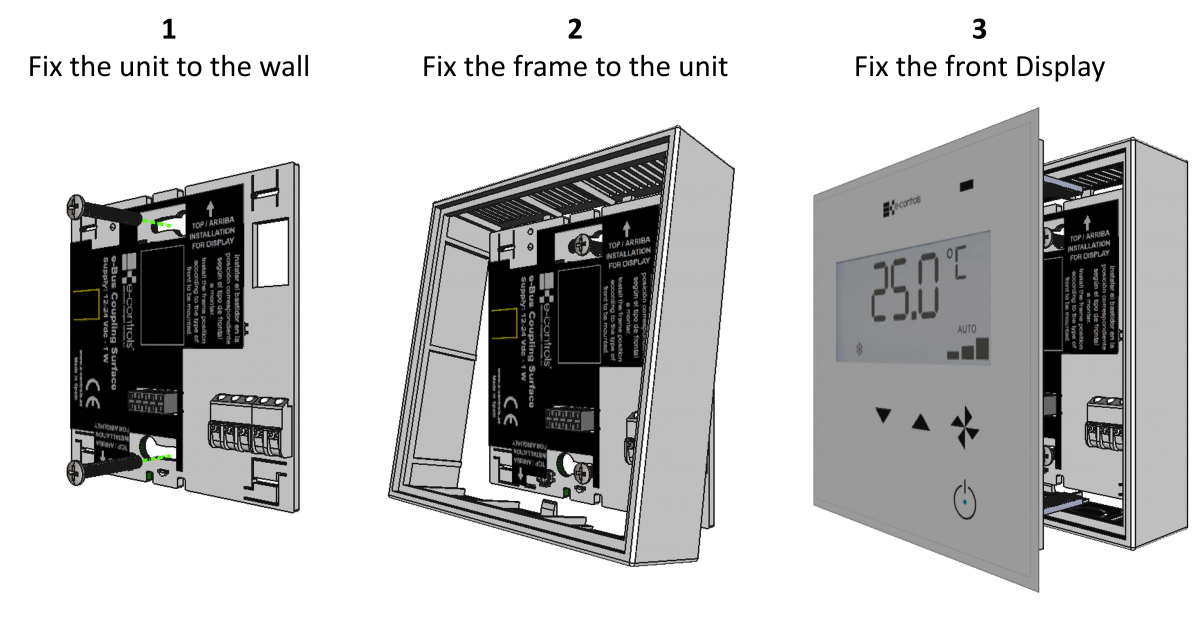 - Fit the e-Touch Display Mini front panel, centering it on the frame and aligning the display connector with the coupling unit connector.