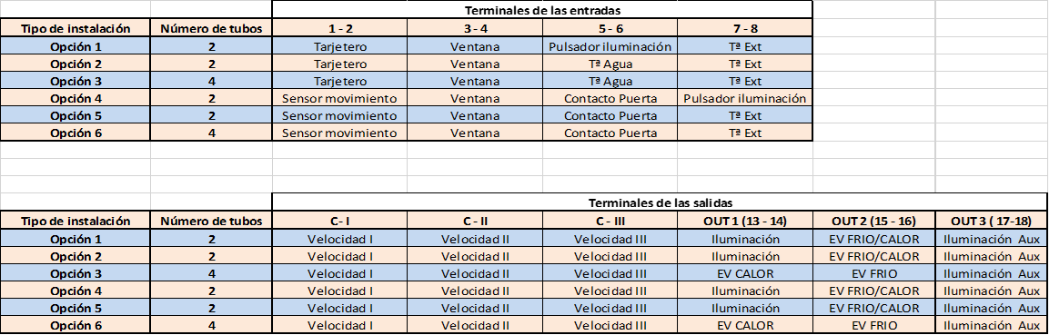 • Configuación tipo Fan-Coil: 3 Velocidades / 1 Velocidad.