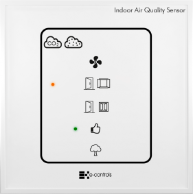 The unit is made up of two elements that provide a large number of combinations and are purchased separately: the AirQualy front panel, which includes the sensors, the LEDs, the frame and a sample label; and the “e-Bus Coupling Surface” mechanism, which provides the power supply and the type of control output. It is available in three models: an stand-alone model without outputs, a model with a relay output and 0-10 V / 4-20 mA outputs which can be configured in order to provide the measured value or perform direct control of a damper for air renewal. There is a third model with Modbus communication to integrate into a building management system (BMS).