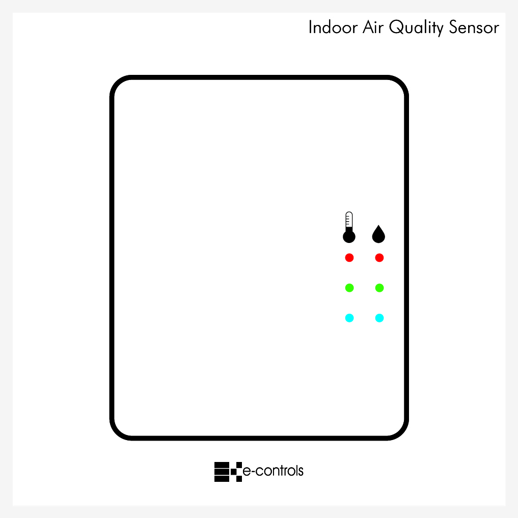 The AirQualy T + RH model includes 2 different sensors to measure temperature and humidity. The equipment is available in two finishes: a model with 2 columns of LED indicators to signal the measurement of each sensor. The temperature and humidity measurements are displayed in two columns with 3 LED indicators each. There is a second model without LED indicators. For a correct CO2 measurement, we recommend installing a sensor every 30 m2 .