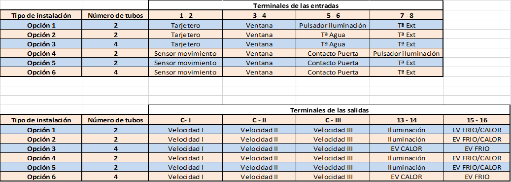 • Configuación tipo Fan-Coil: 3 Velocidades / 1 Velocidad.