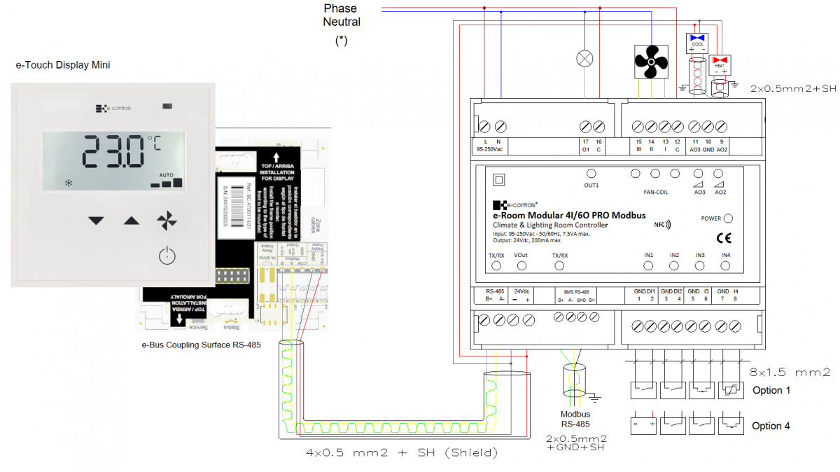 - Bus de comunicaciones con interface RS-485 para comunicación con termostato display